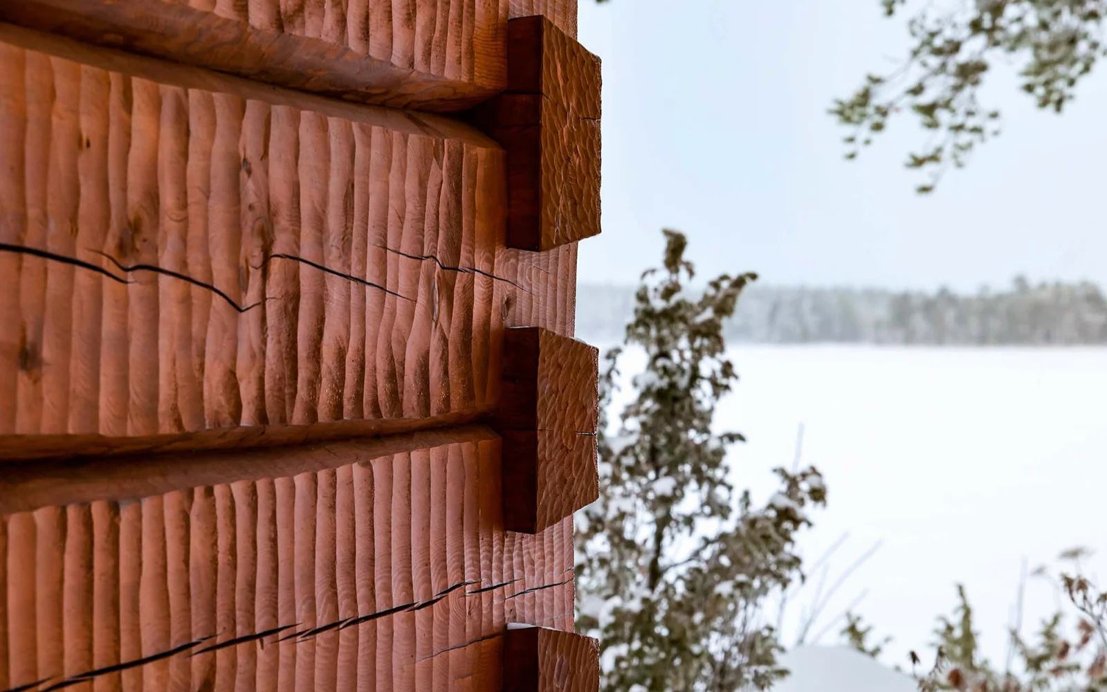 Each log is carefully shaped and stacked horizontally to create massive timber walls. This simple yet effective structural logic has been used for centuries in Nordic architecture and continues to offer excellent durability and reliability.