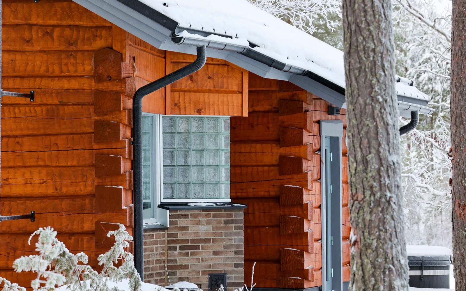 Giant Log construction uses exceptionally large solid logs up to 300 mm in diameter, to create massive and visually striking timber walls. These logs grow slowly (up to 100+ years) in Nordic forests, resulting in dense, unique and durable wood with excellent structural properties. The slow growth in northern climate produces more dense annual rings, resulting in stronger timber.