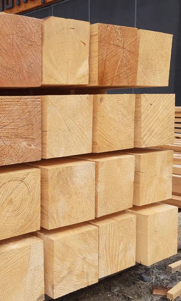 The timber structures we supply are produced from Northern pine, spruce, and larch, while particularly strong aspen is often used for specialized applications such as sauna benches.