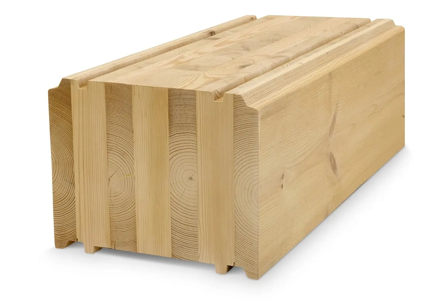 The result is a stable and reliable log wall structure that retains the warmth and visual presence of solid timber while benefiting from improved manufacturing precision.